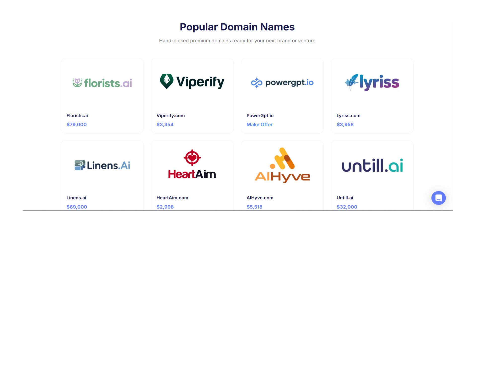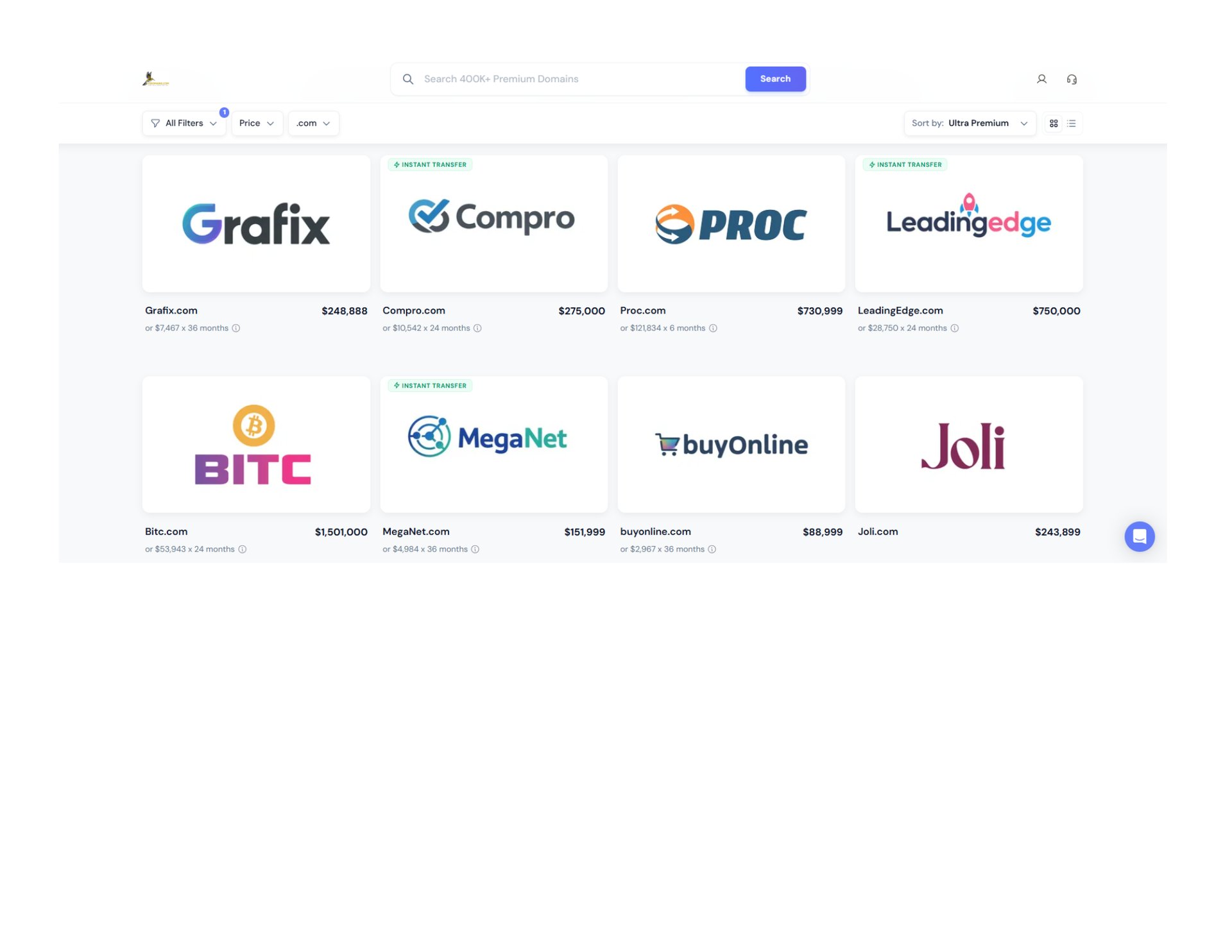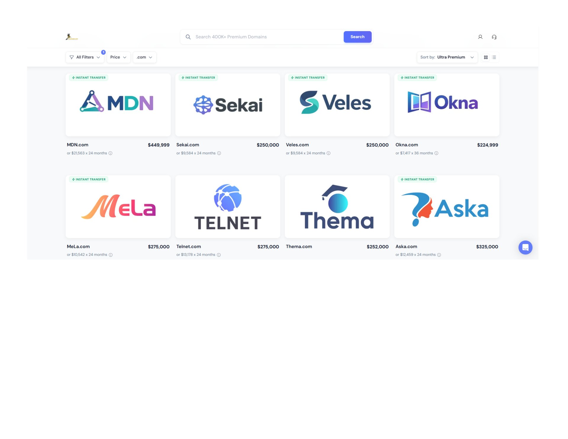 Premium Domain Names For Sale - Explore our unique, hand-picked brand & business names for sale along with a matching, premium domain name. Buy instantly for a fixed low price.